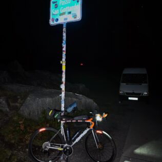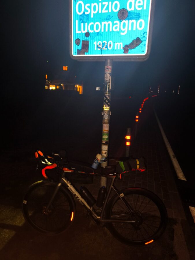In Disentis zeigte das Thermometer bereits 28 Grad, als ich zum Lukmanier hochfuhr. Dort war es nach 20:00 Uhr, die Nacht brach herein. Die lange Abfahrt nach Biasca mit dem scheinbar endlosen Ziehstück zurück nach Airolo kannte ich schon von der Gold-Runde im letzten Jahr. Doch diesmal wollte ich ein hartnäckiges Gerücht aus dem Quäldich-Forum persönlich überprüfen: Den direkten Weg vom Lukmanier nach Airolo über den Passo dell’Uomo. Mit dem Rennrad angeblich nicht machbar.